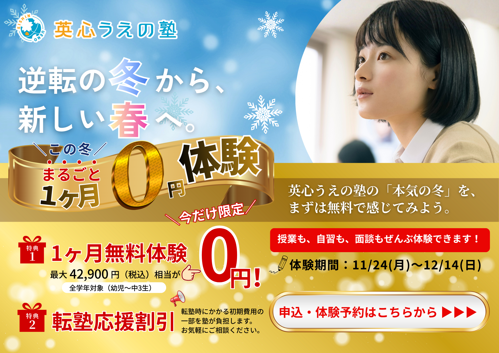 英心うえの塾の「本気の冬」を、まずは無料で感じてみよう。
