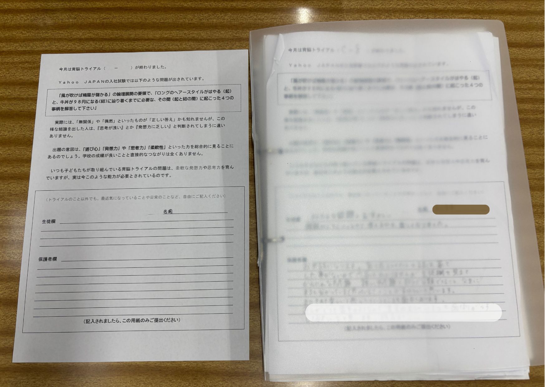 これらのクラスでは、**「育脳トライアル」**という教材を使いながら、単なる知識詰め込み型ではなく、