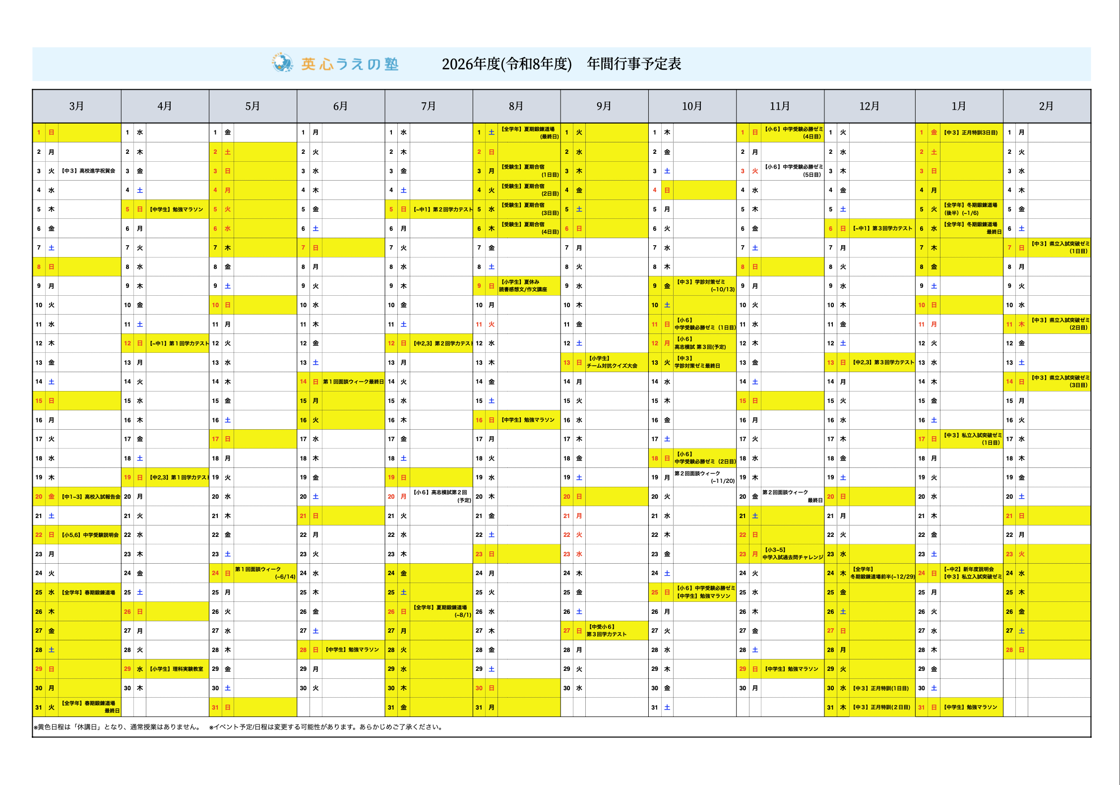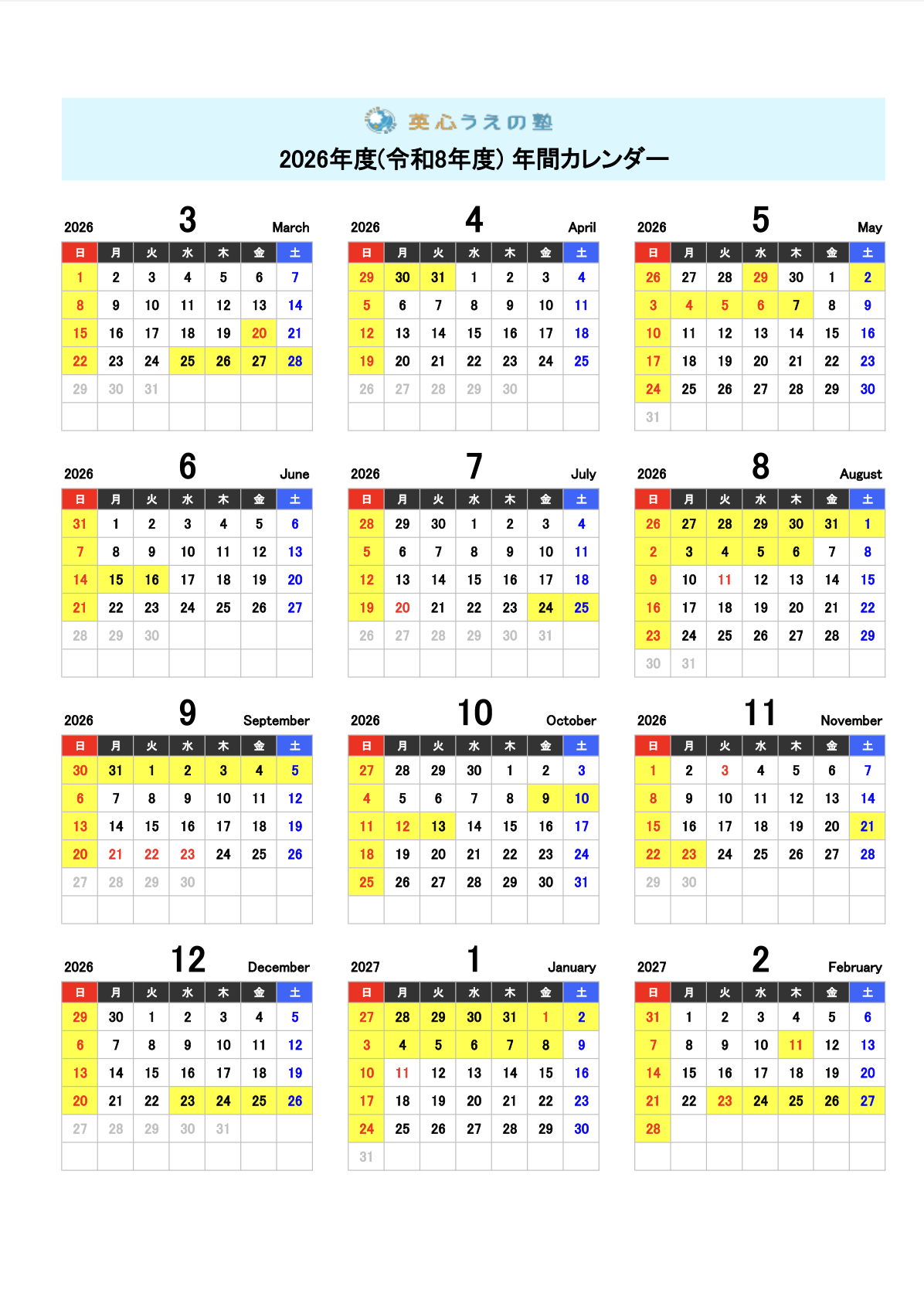 2025年度(令和7年度)年間カレンダー