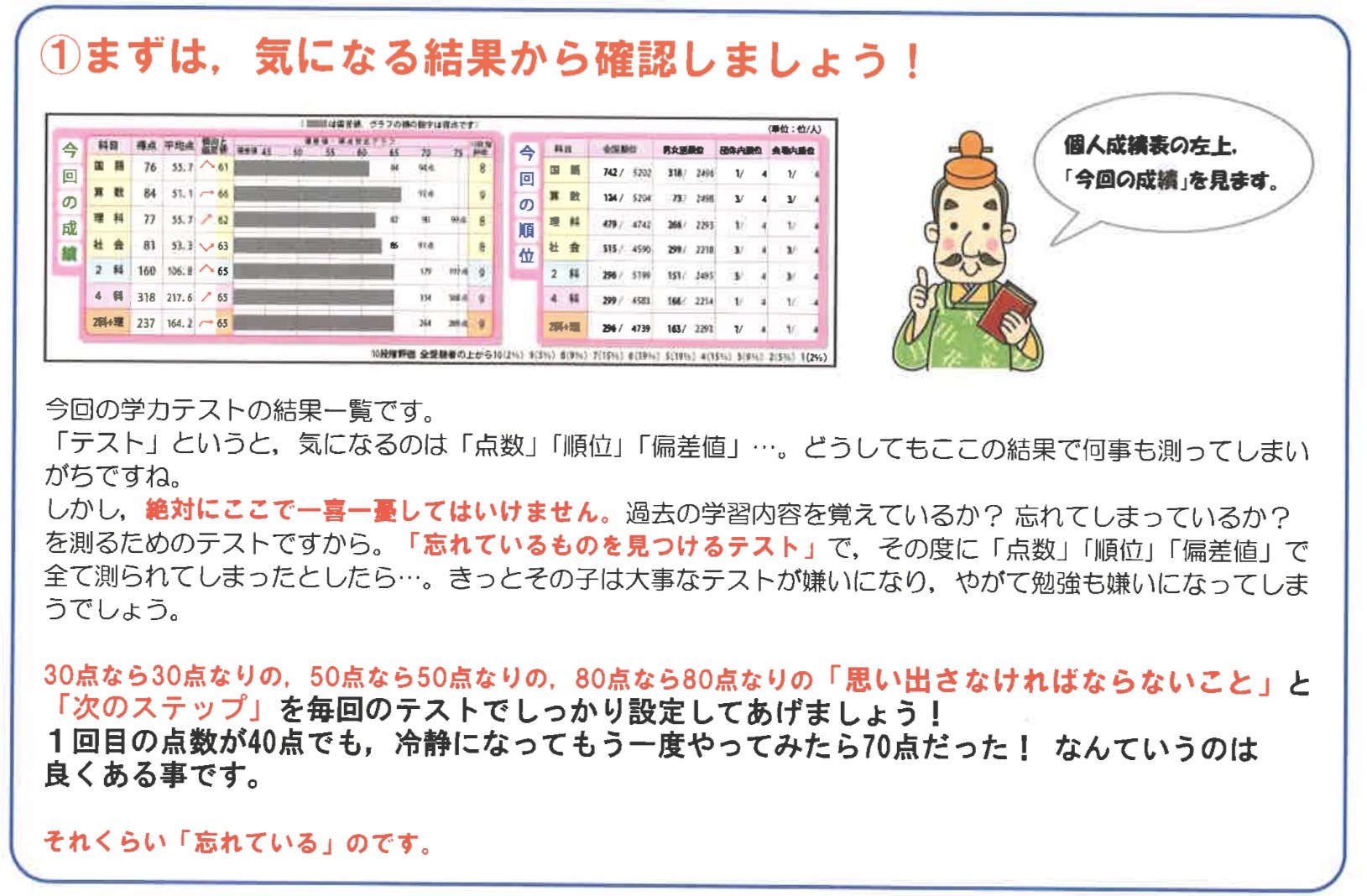 ご家庭でもぜひ、成績帳票を一緒に開き、