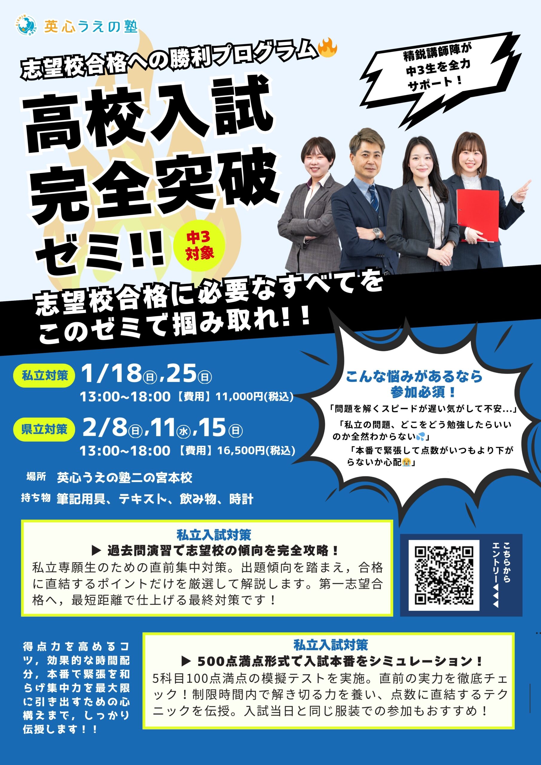 【小学生〜高校生申込受付中!】英心うえの塾2025 冬期講習開催!!