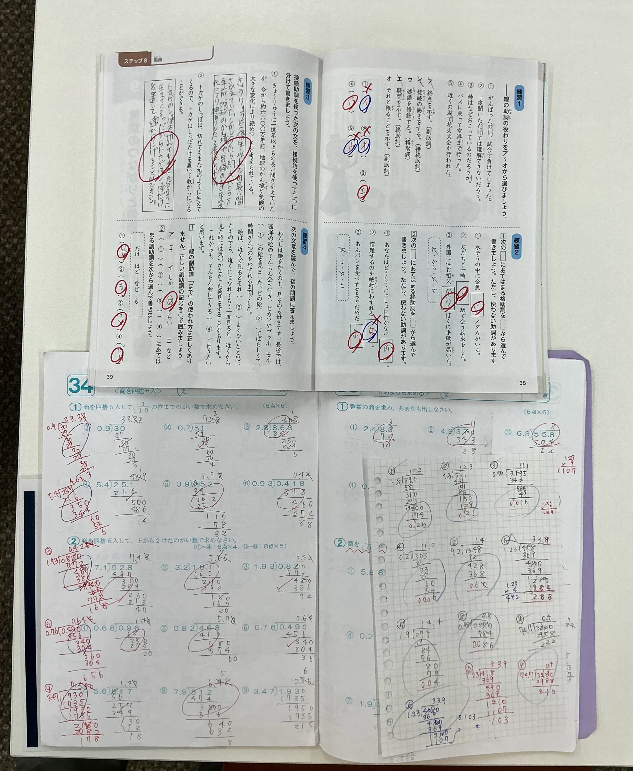 助詞の使い方や係り受け、修飾語など、中学校の学習にもつながる文法的な内容についても、