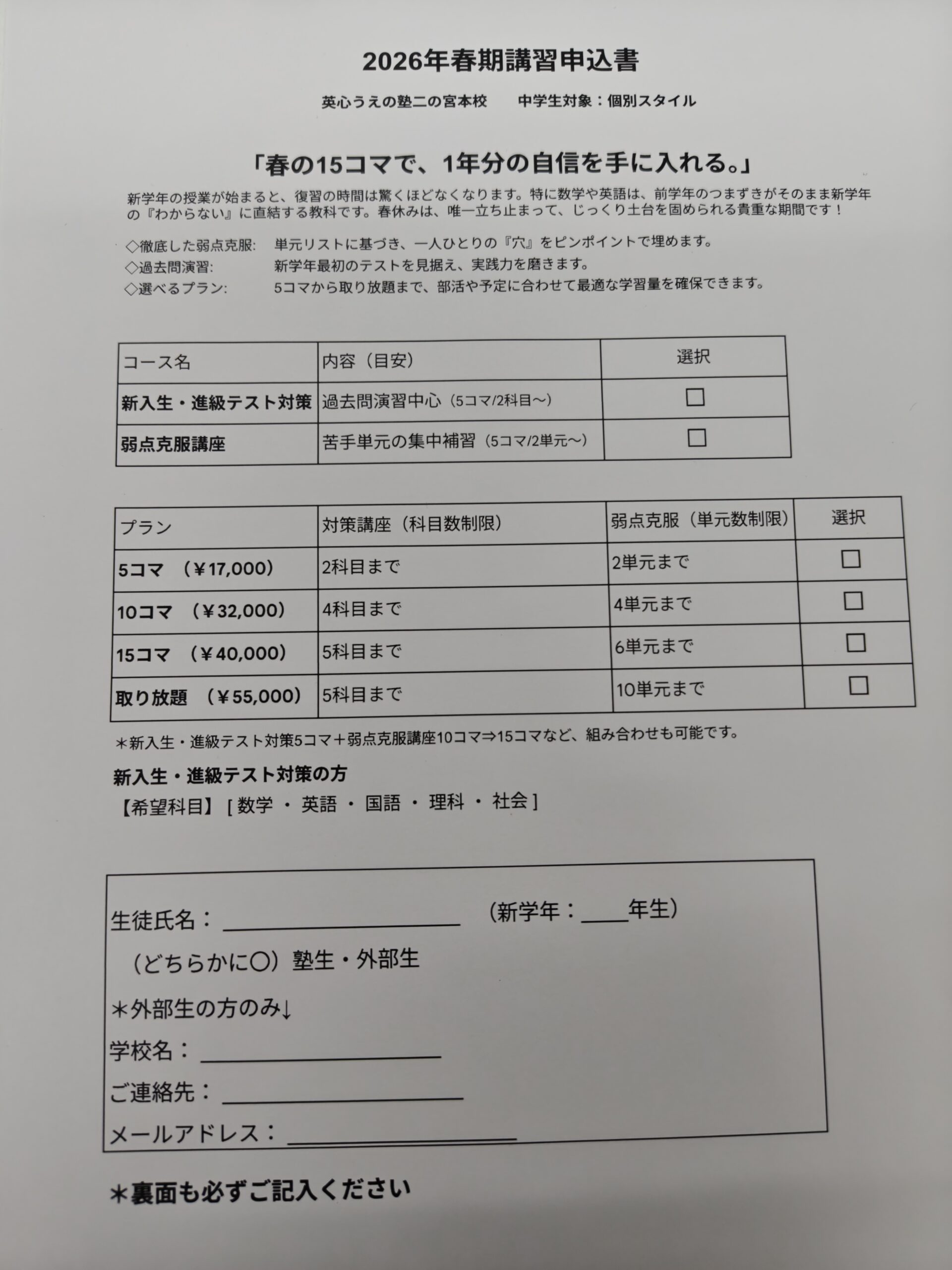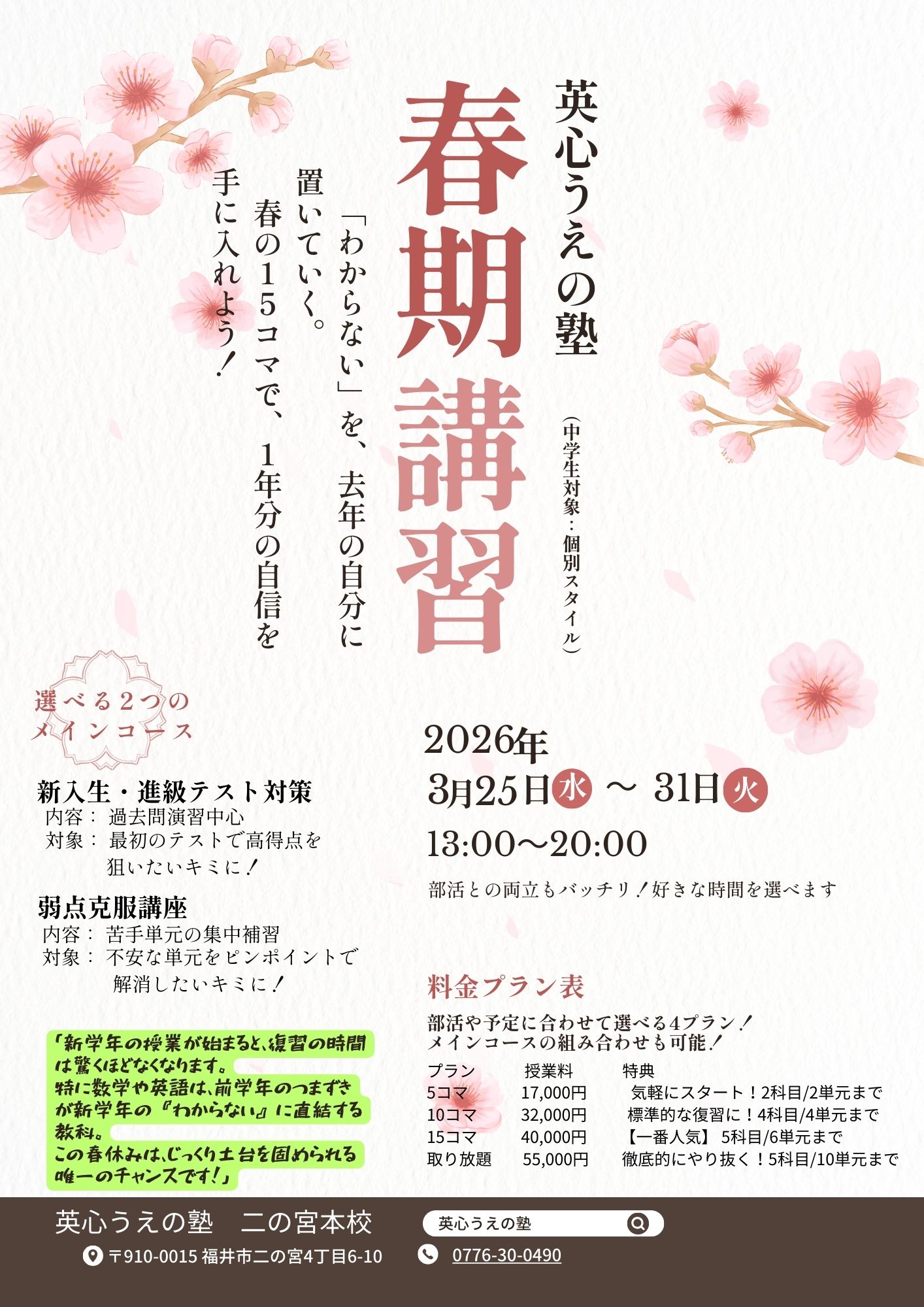■ 英心うえの塾の中学生個別:春期講習、ここがポイント!