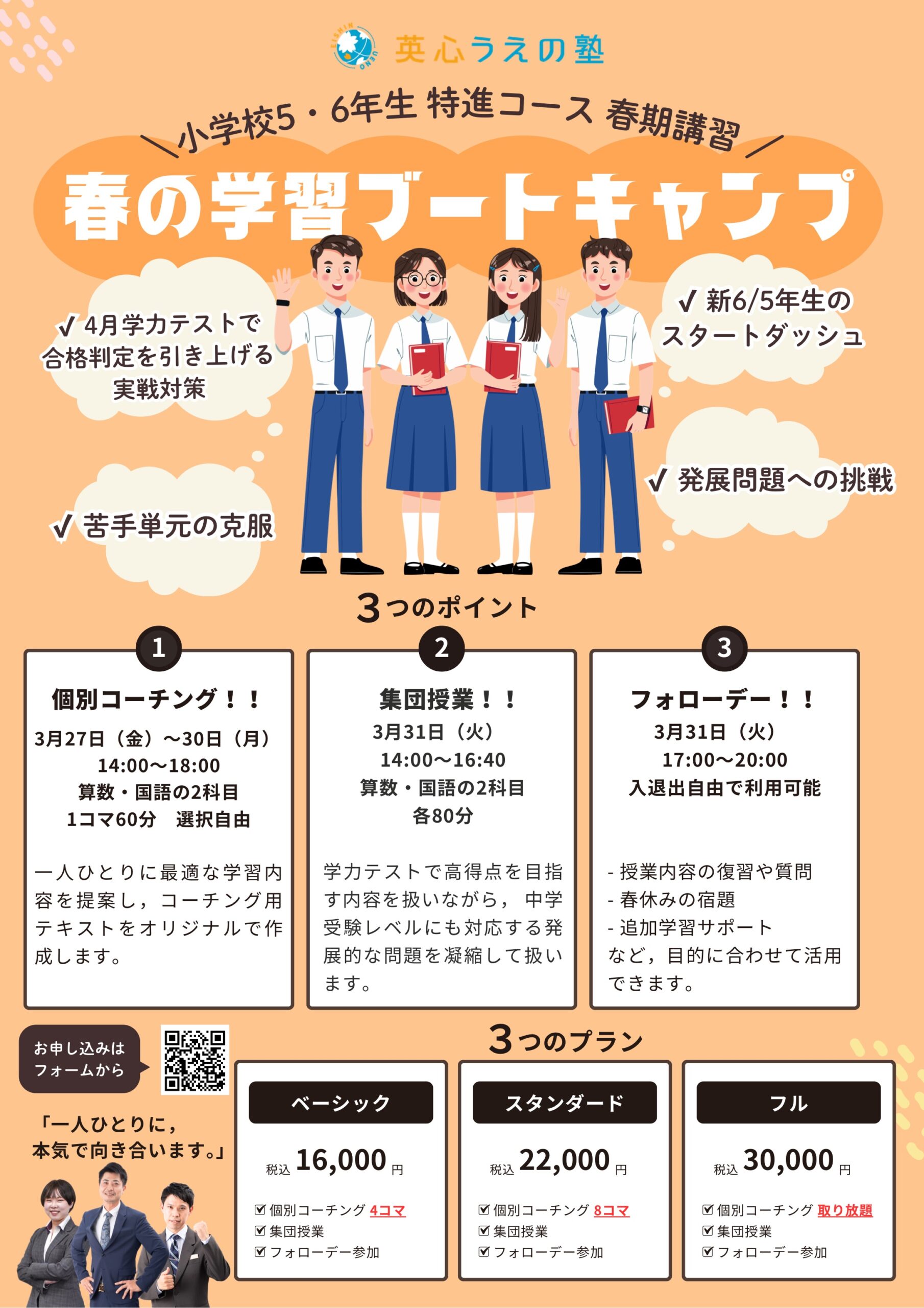 🌸 小学生特進コース 春の学習ブートキャンプ(春期講習)